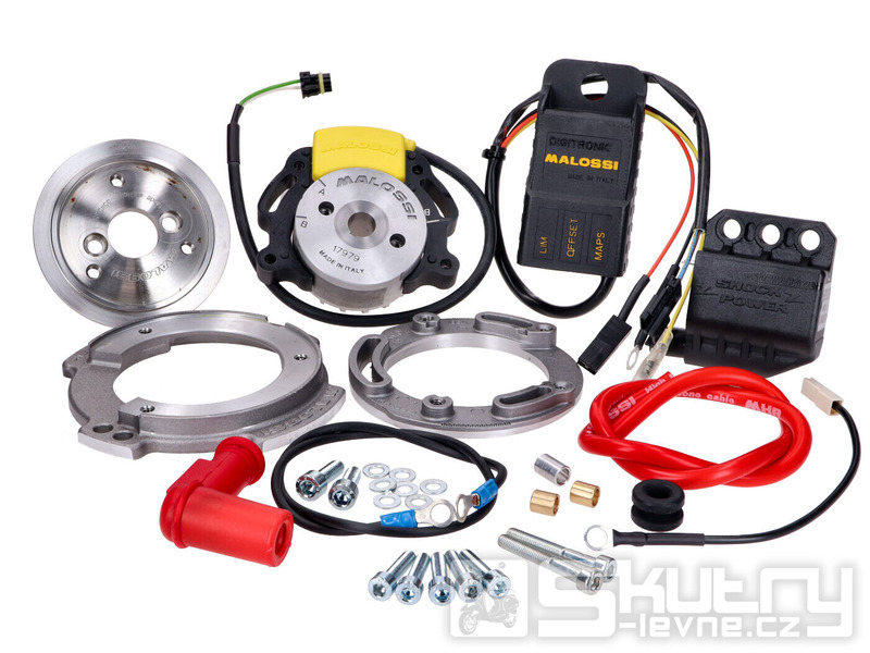 Vnitřní rotorové zapalování Malossi MHR Team II, vhodné pro různé modely Yamaha, MBK, Aprilia, Malaguti, CPI, Italjet, Benelli a Beta s kapalinou chlazeným 50 ccm Minarelli motorem. S MHR Team II lze spravovat více zapalovacích map bez dalšího externího zařízení. Vybrané mapy lze navíc posouvat pomocí funkce OFFSET o ±2° v krocích po 0,5°. Díky použití 8bitového mikroprocesoru STM8 s rychlostí 20 MIPS je jednotka odolnější vůči rušení a řízení předstihu je přesnější.