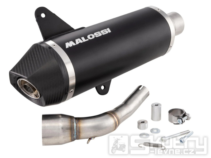 Sportovní Malossi RX Black je lehký, odolný a výkonný tlumič výfuku navržený pro maximální efektivitu a výrazně sportovnější zvuk. Tělo je vyrobeno z hliníkové slitiny s černou eloxovanou povrchovou úpravou, doplněné o nerezový svod a držák a koncovku z karbonu. Díky moderní konstrukci váží výfuk pouhých cca 3,5 kg, což je výrazně méně než originální díl.